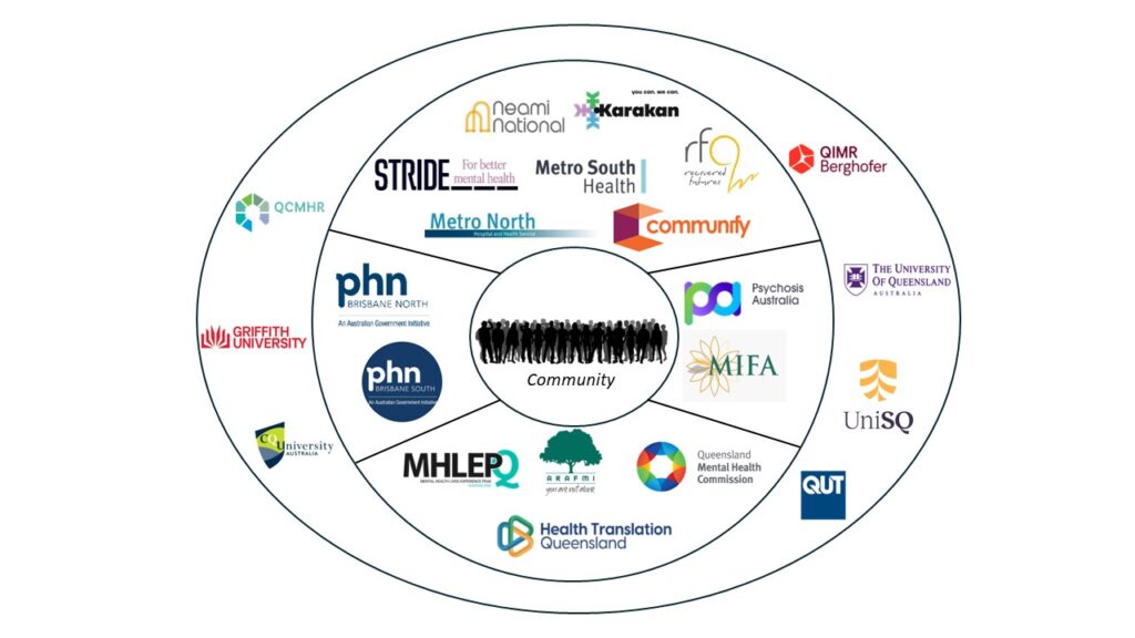 The CoRTA-MH consortium is based on a decade of collaboration with partners in the Brisbane region. The consortium has been developing over the last two years in consultation with partners, and led by Dr Justin Chapman in his capacity as a Board member of Psychosis Australia. Psychosis Australia coordinates the Steering Committees, which currently oversee one translational research project about exercise for improving quality of life for people with severe and persistent mental health challenges, administered by Griffith University.